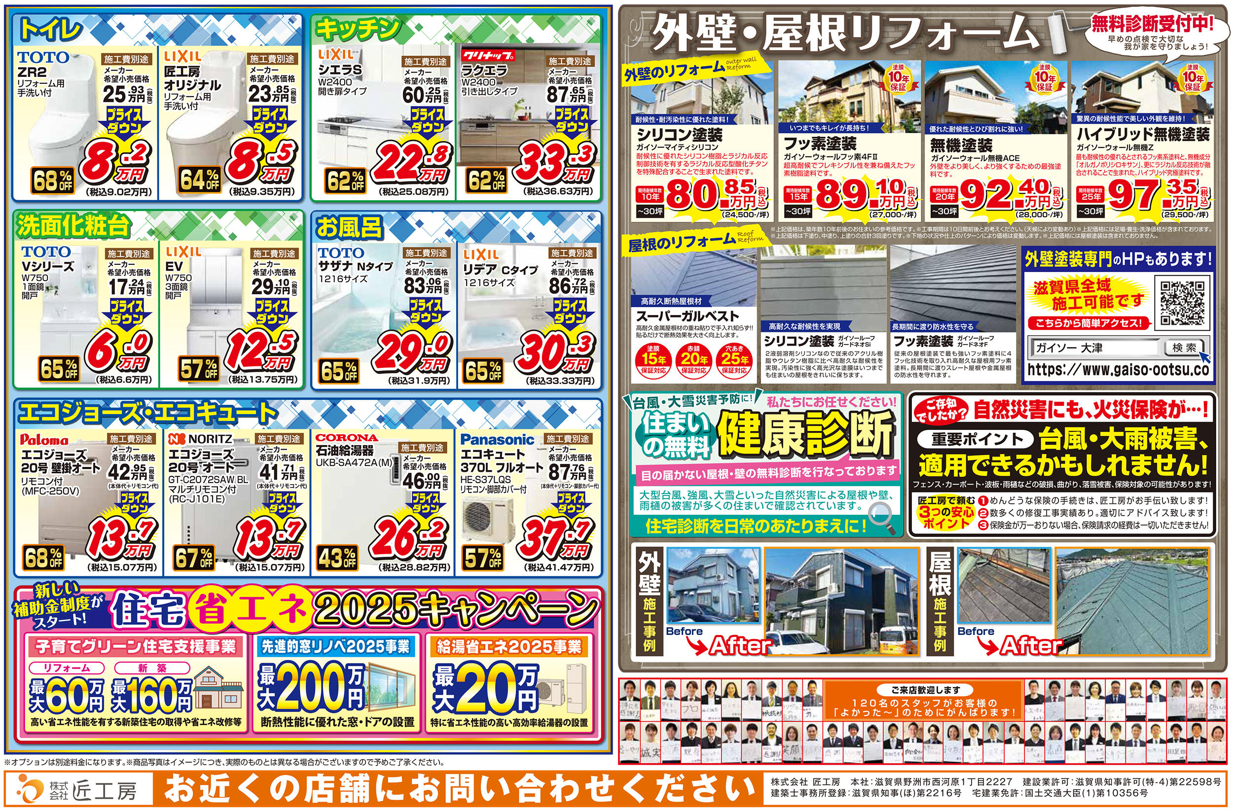 【会場】匠工房 野洲店・湖西店・水口店・瀬田店・彦根店・草津栗東店・八日市店・イオンタウン湖南店・長浜店