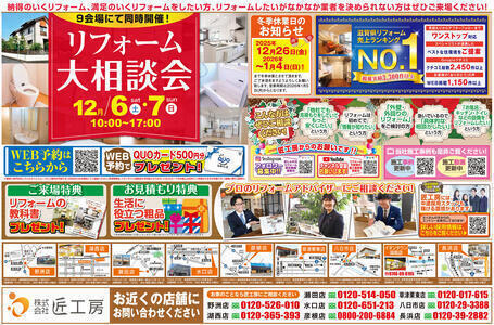匠工房 野洲店・湖西店・水口店・瀬田店・彦根店・草津栗東店・八日市店・イオンタウン湖南店・長浜店の9会場にて同時開催!!