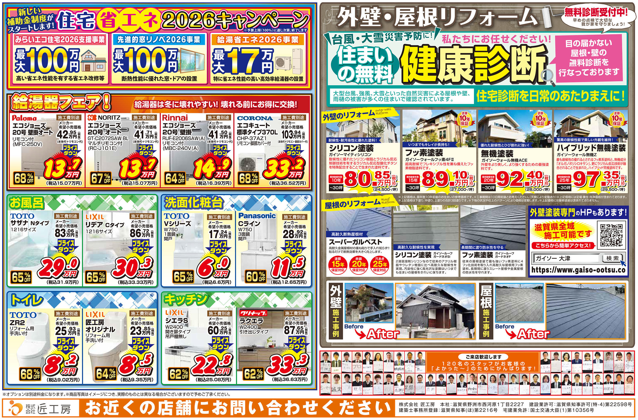 【会場】匠工房 野洲店・湖西店・水口店・瀬田店・彦根店・草津栗東店・八日市店・イオンタウン湖南店・長浜店