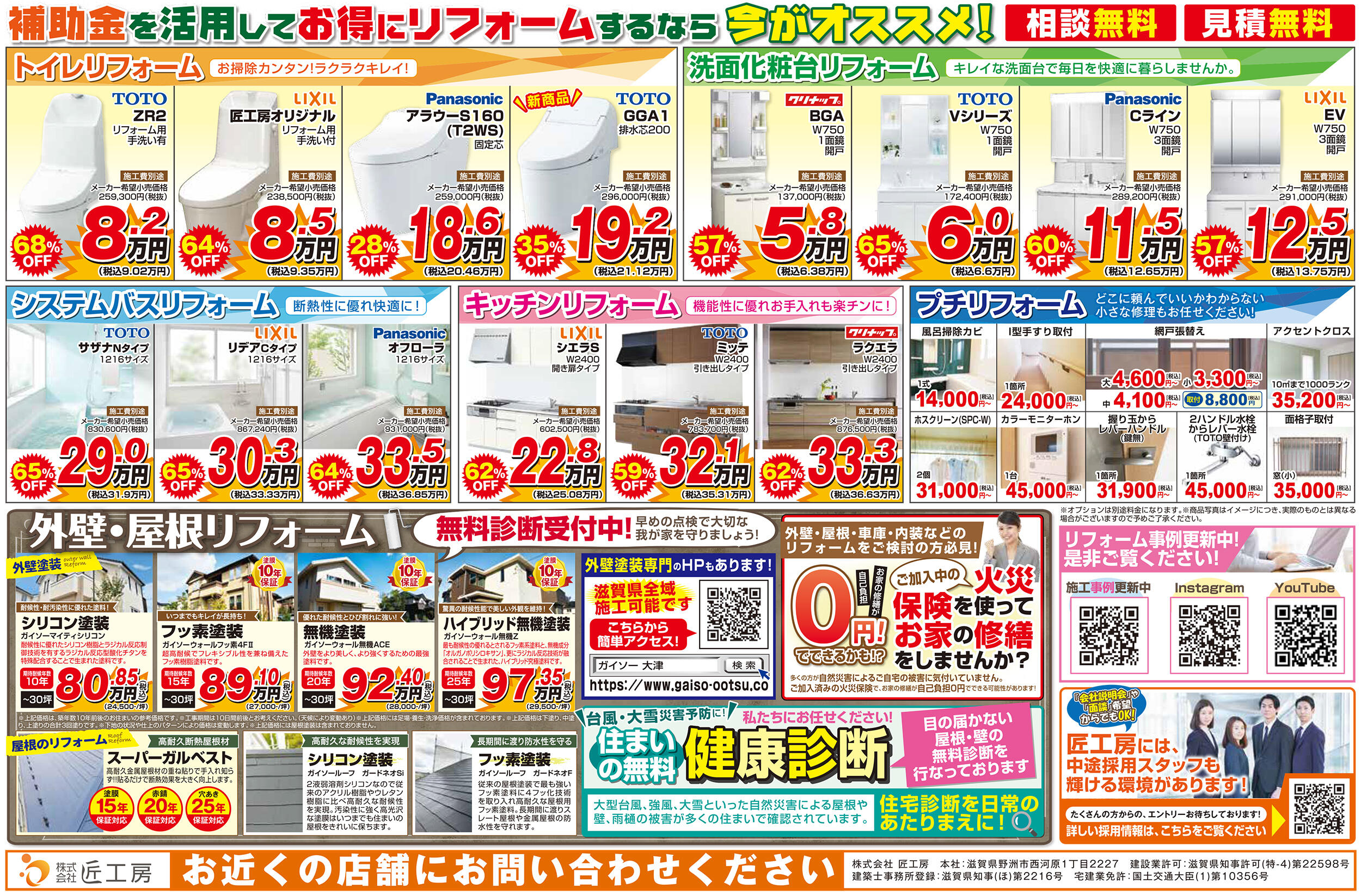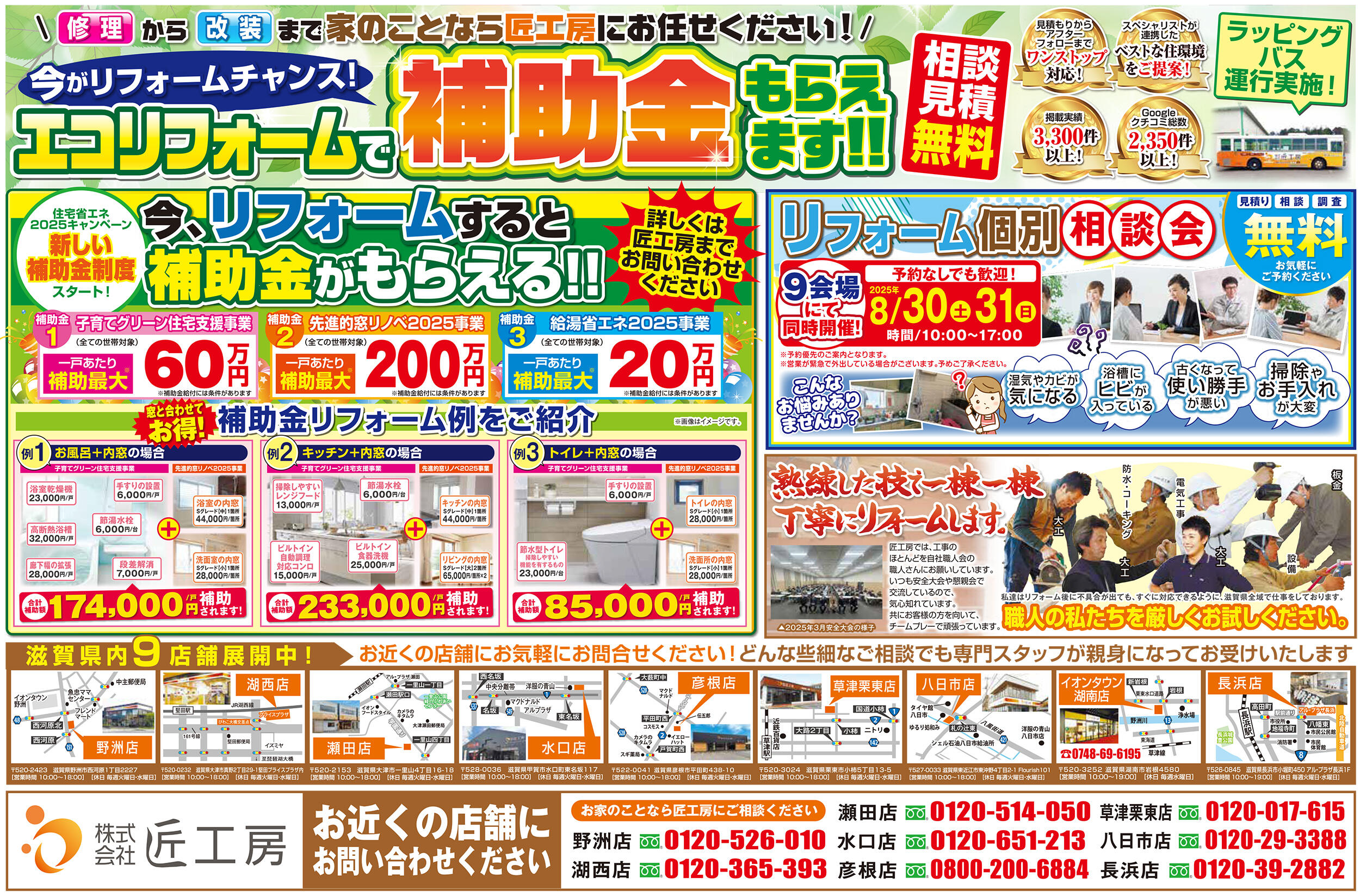 【会場】匠工房 野洲店・湖西店・水口店・瀬田店・彦根店・草津栗東店・八日市店・イオンタウン湖南店・長浜店