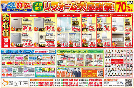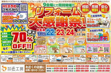 匠工房 9店舗でリフォーム大感謝祭を開催いたします!