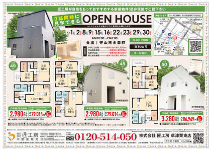 新築一戸建てオープンハウス3邸同時開催!【守山市 金森町】