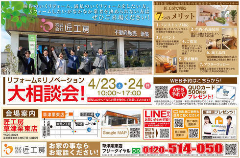 リフォーム&リノベーション大相談会【草津栗東店】 4月21日折込