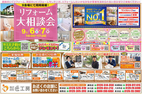 2日間限定 リフォーム大相談会!9会場同時開催! 9月4日折込