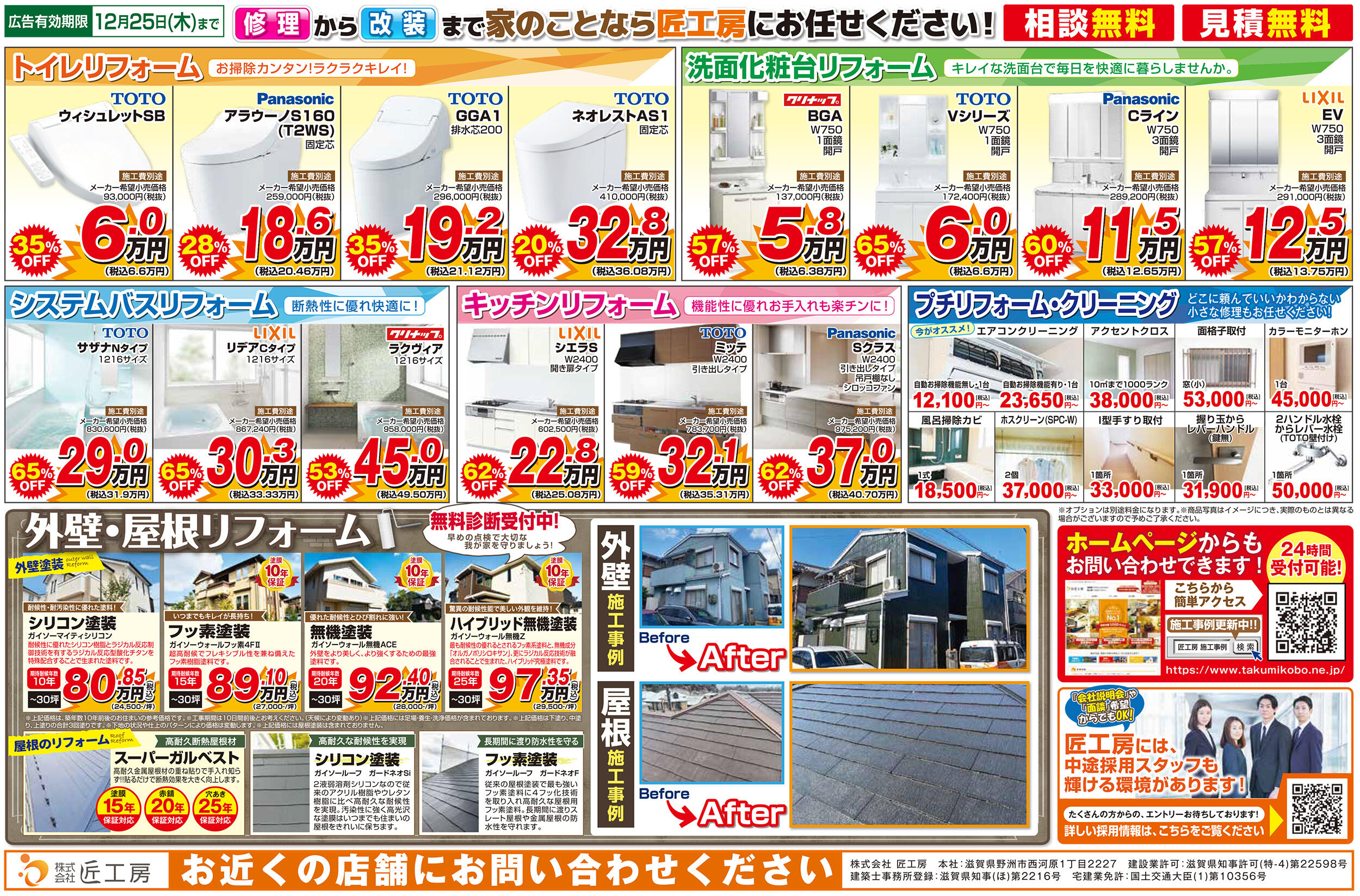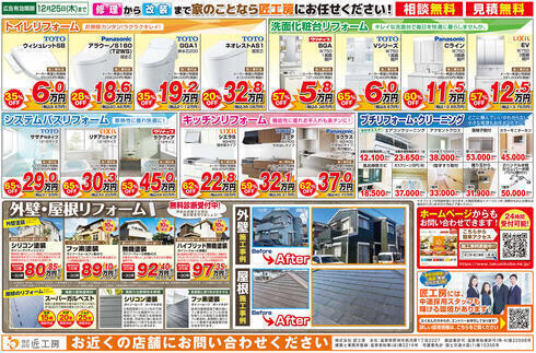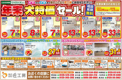匠工房の水まわり【年末】大特価セール! 12月18日折込