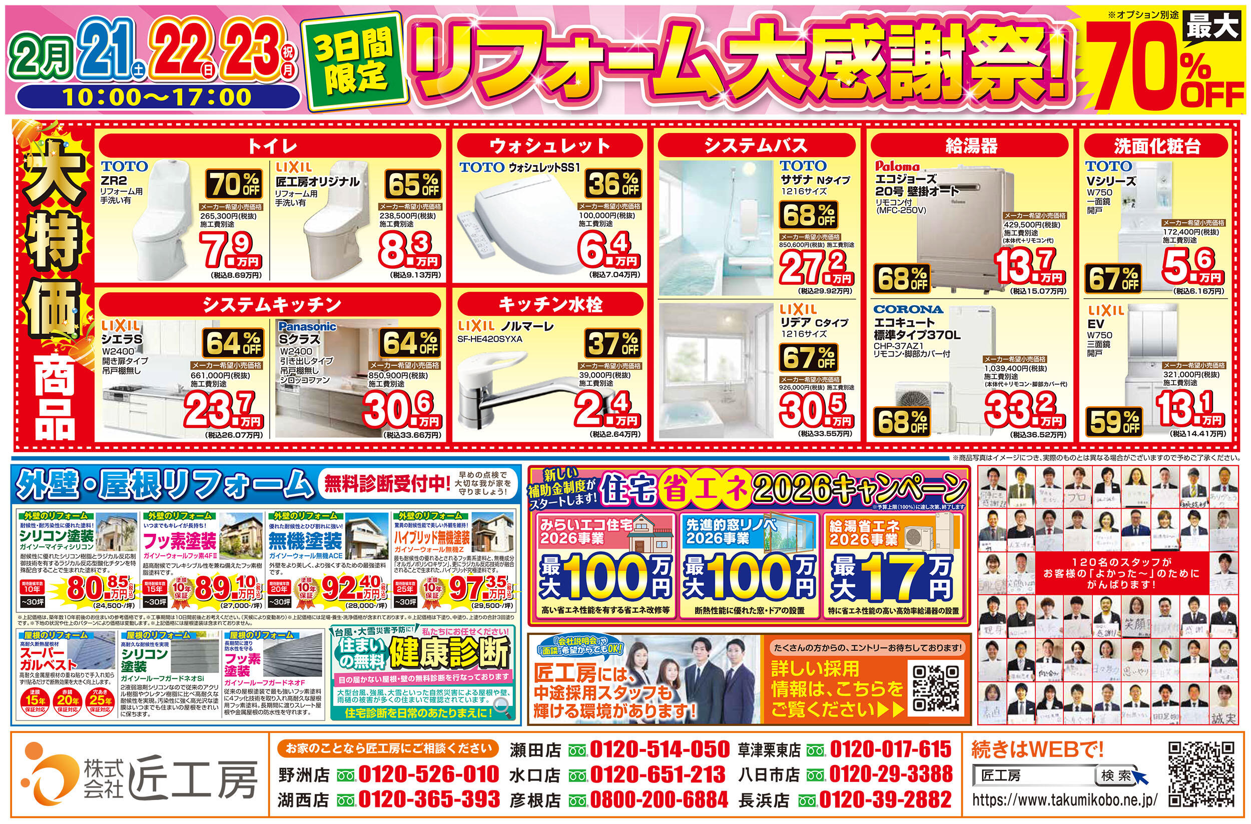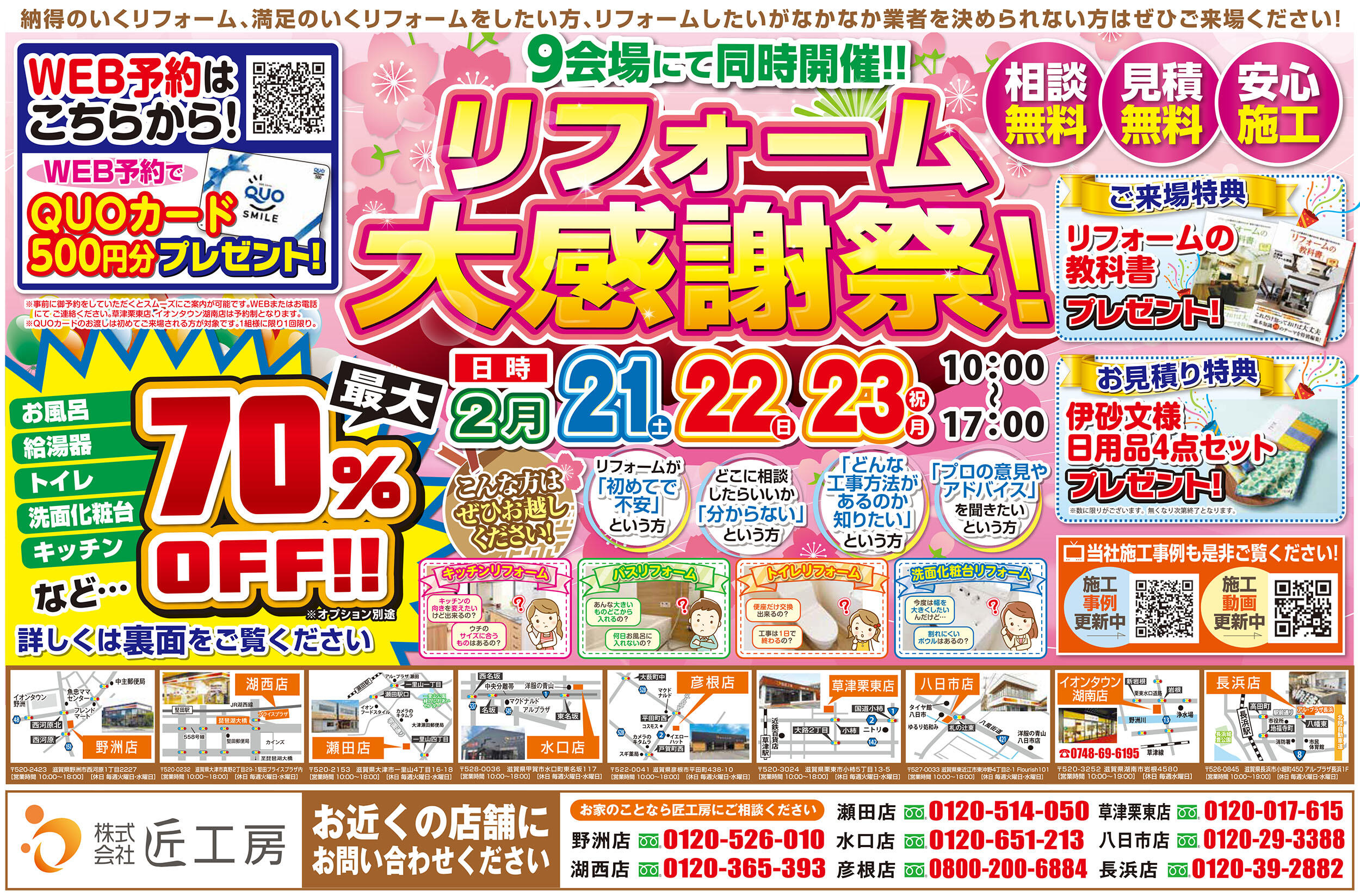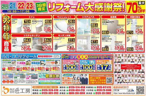 3日間限定 リフォーム大感謝祭!9会場同時開催! 2月19日折込