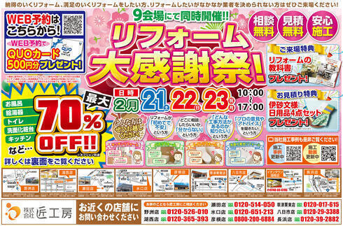 3日間限定 リフォーム大感謝祭!9会場同時開催!