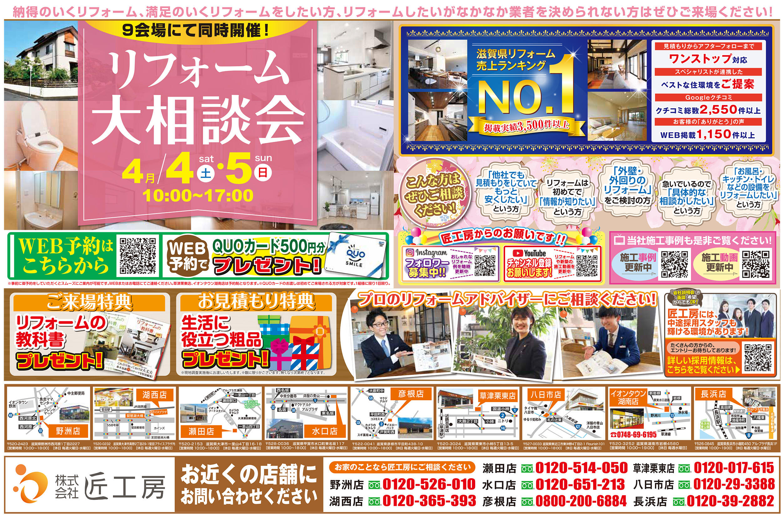 2日間限定 リフォーム大相談会!9会場同時開催! 4月2日折込