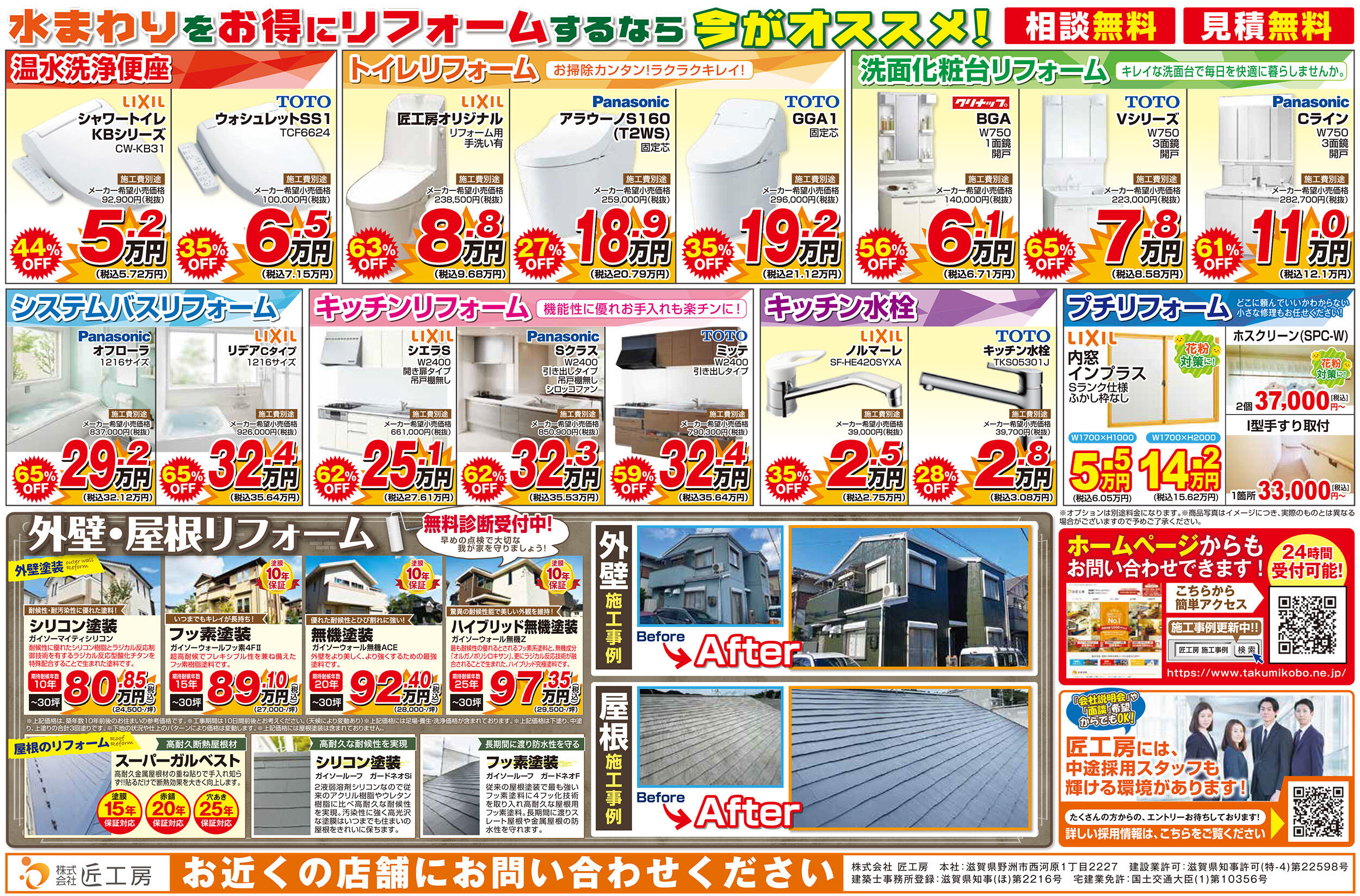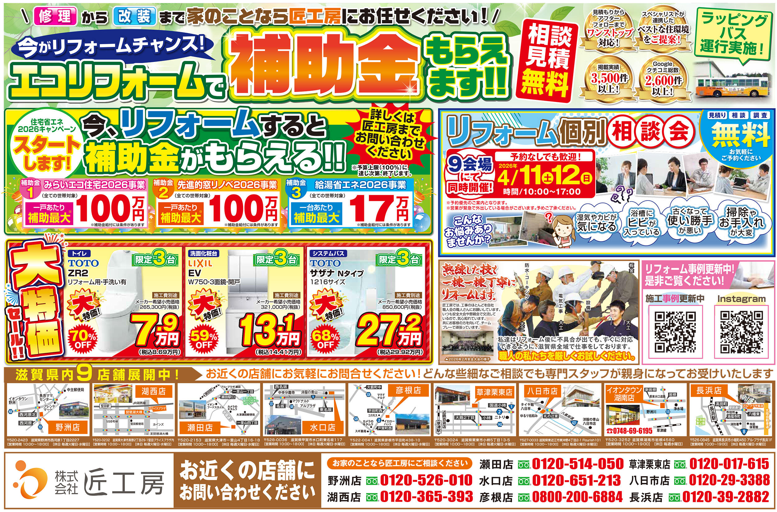 匠工房の水まわり大特価セール! 4月9日折込