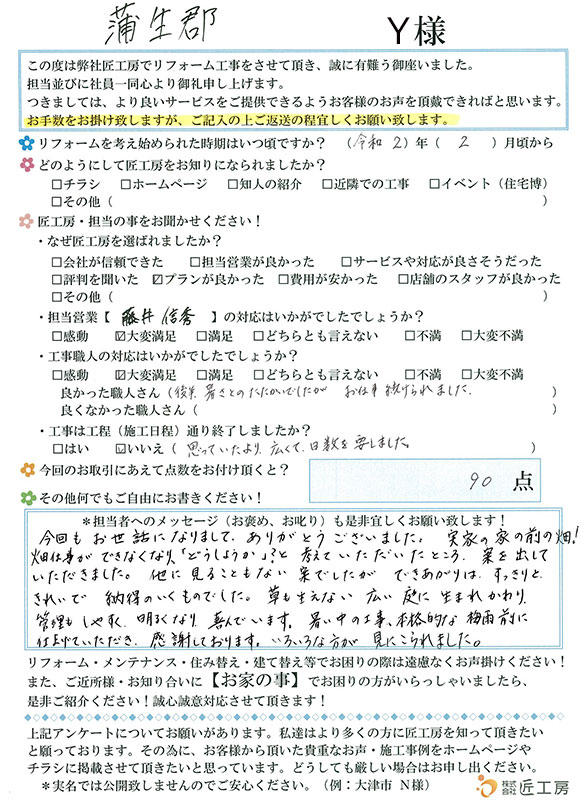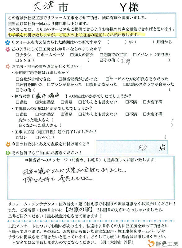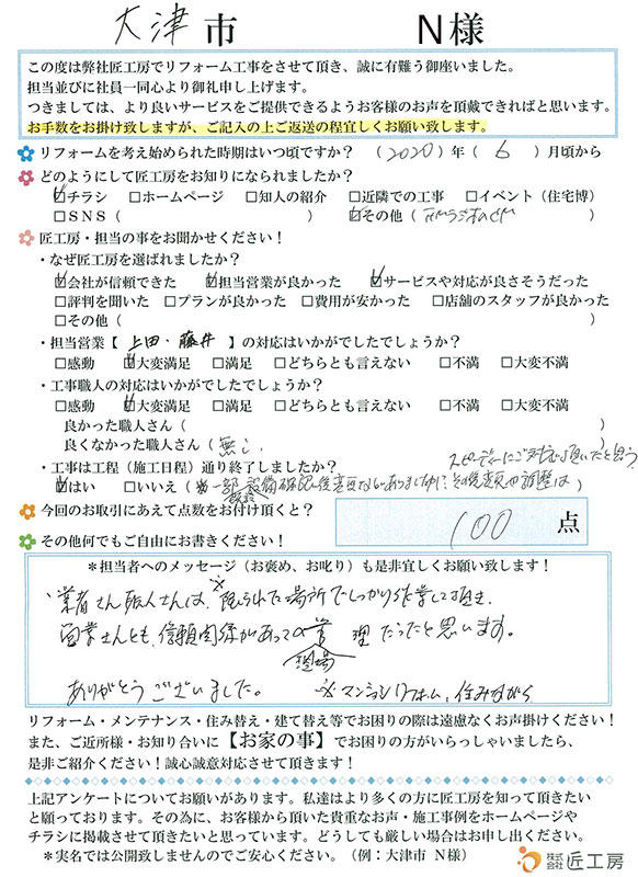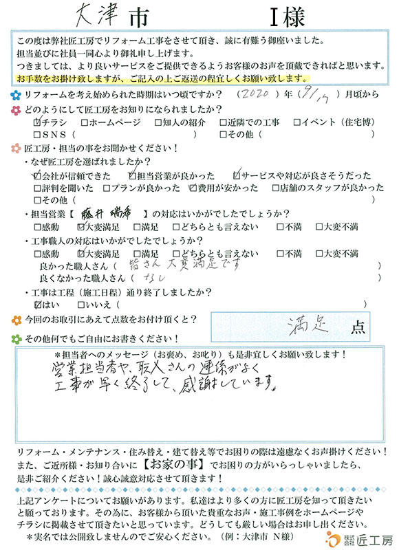 カツカツな工事日程を予定通り組んで頂き有り難かったです!