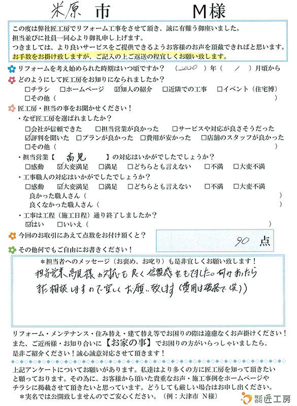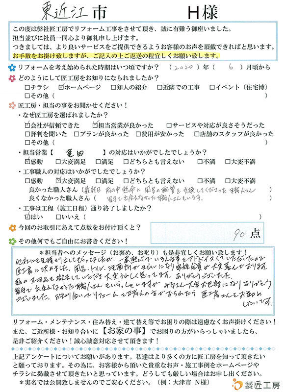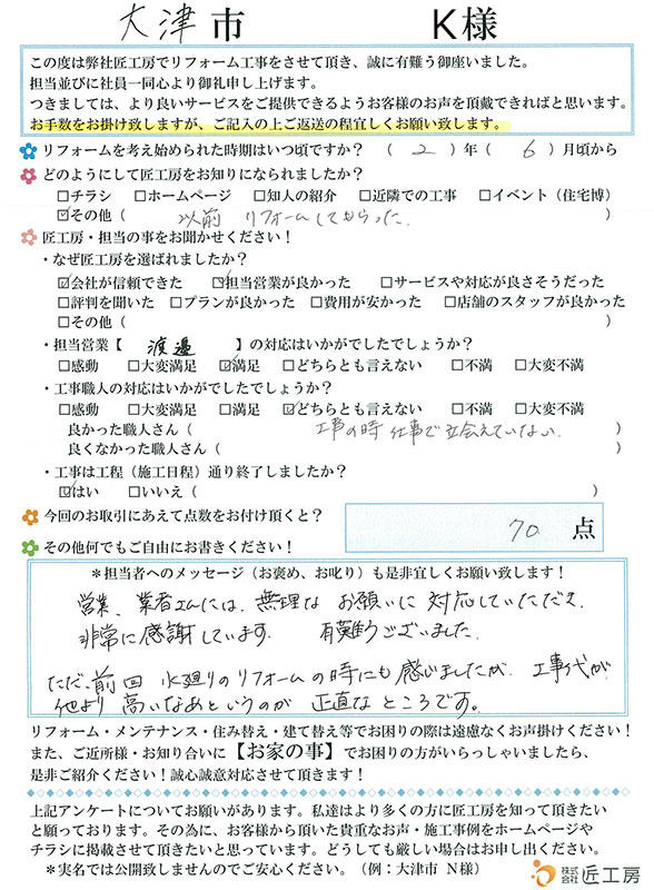あいさつも何度も来て下さり丁寧な対応だと思いました!