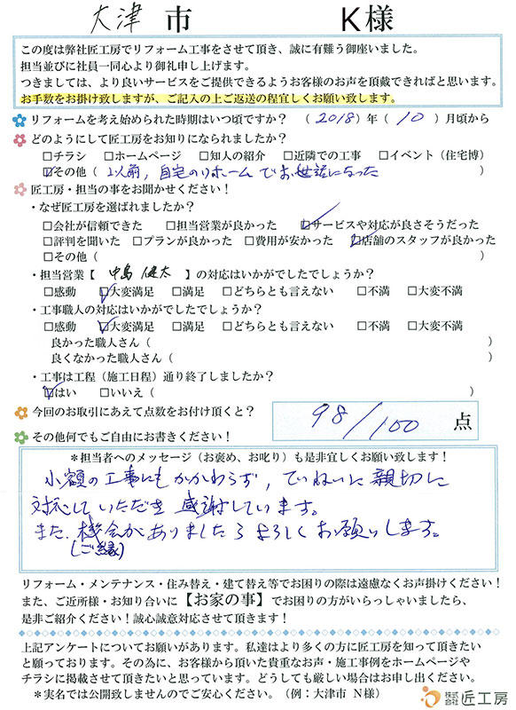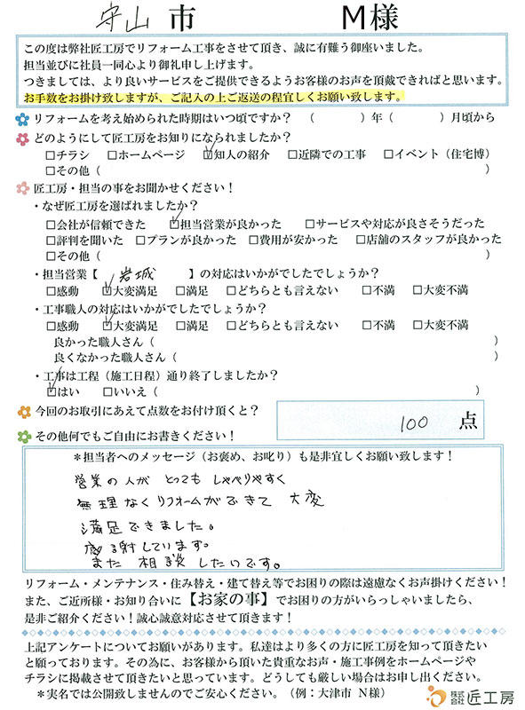 無理なくリフォームできて大変満足できました!