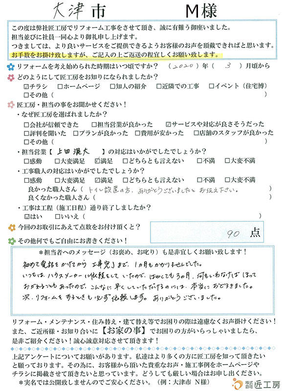 見積りも明朗で親切に対応して頂き有難うございました!