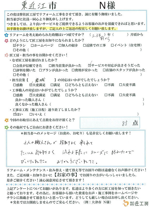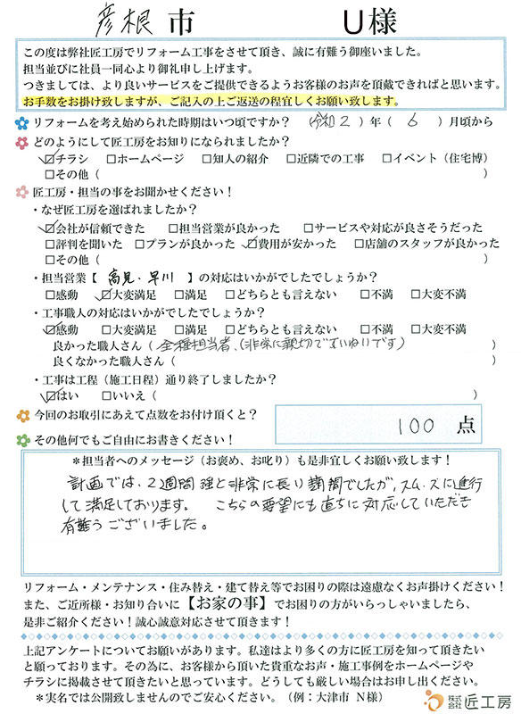 こんなに早くしていただけるのはおどろきでした!