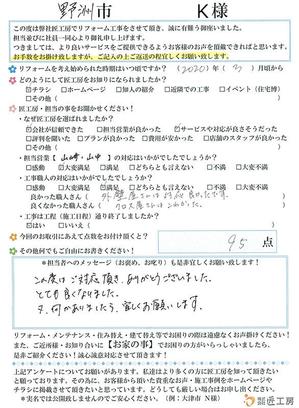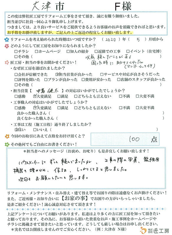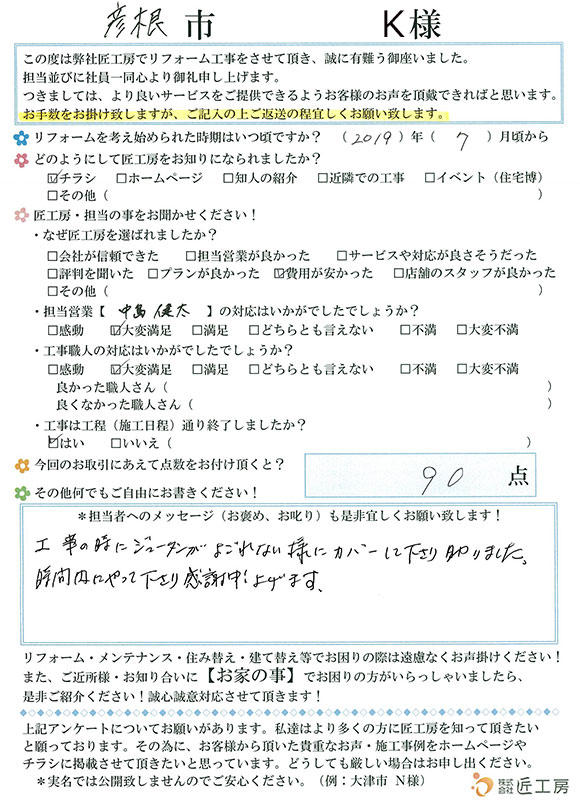 工事中の写真、保証等しっかりしてると思いました!
