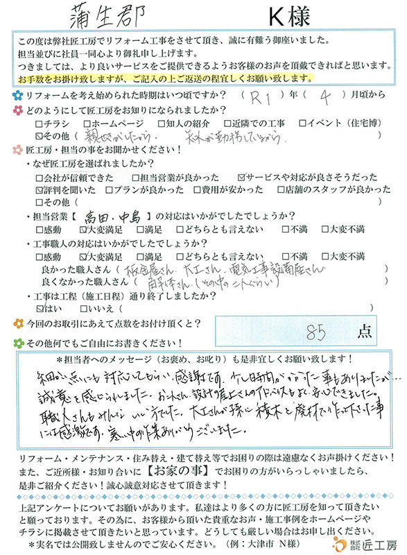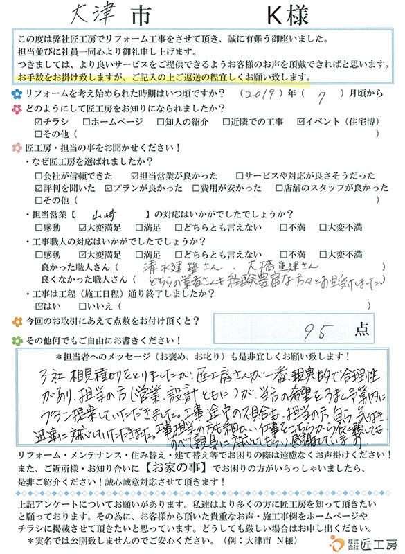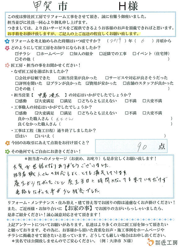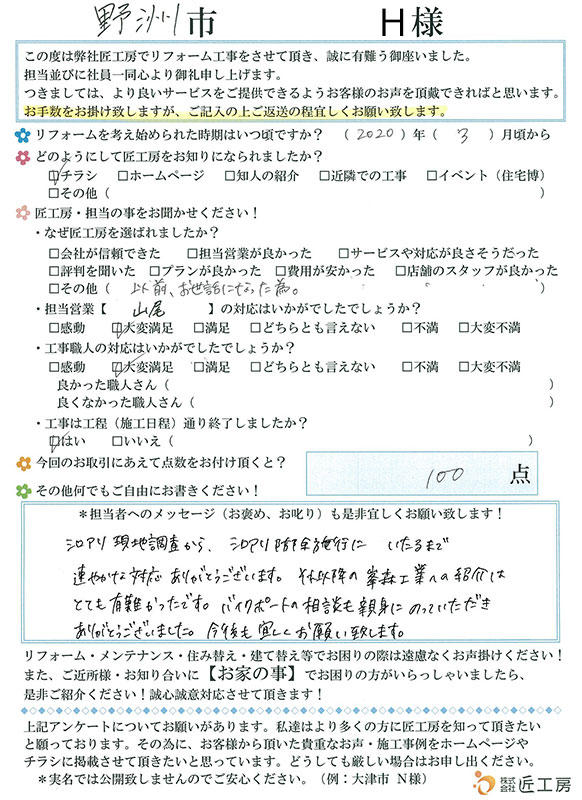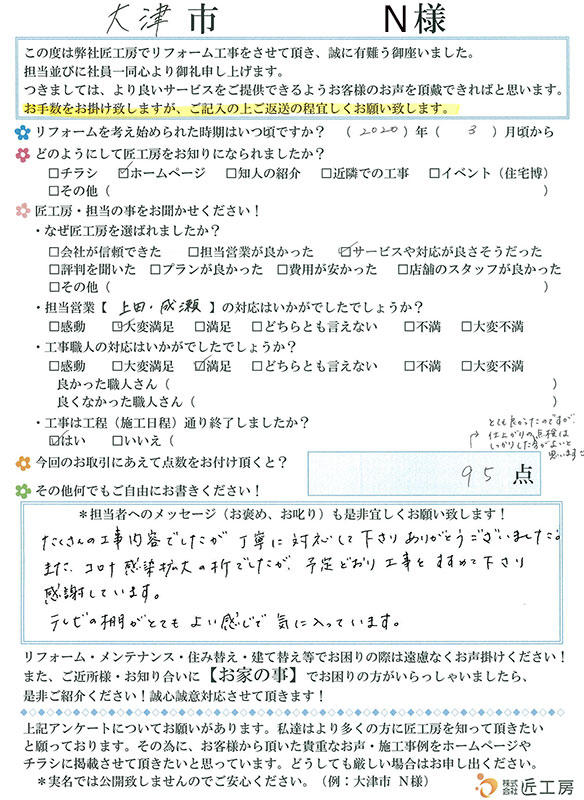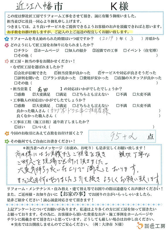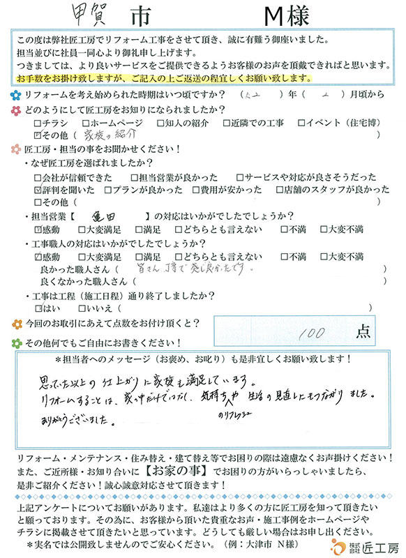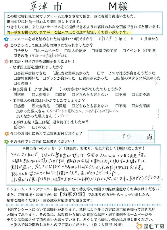 今回のリフォームにとても満足です!