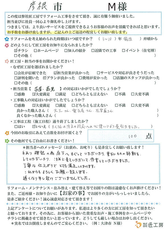 要望をとても誠実に聞いていただけました!