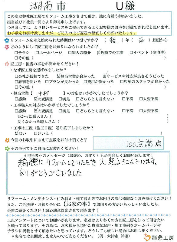 綺麗にリフォームしていただき大変よろこんでいます!