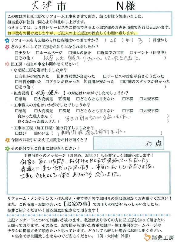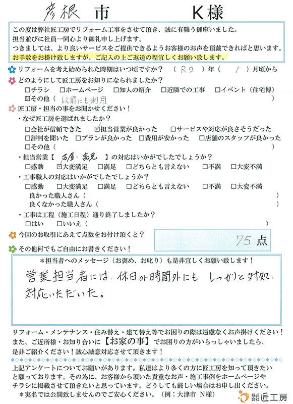 休日や時間外にもしっかりと対処いただきました!