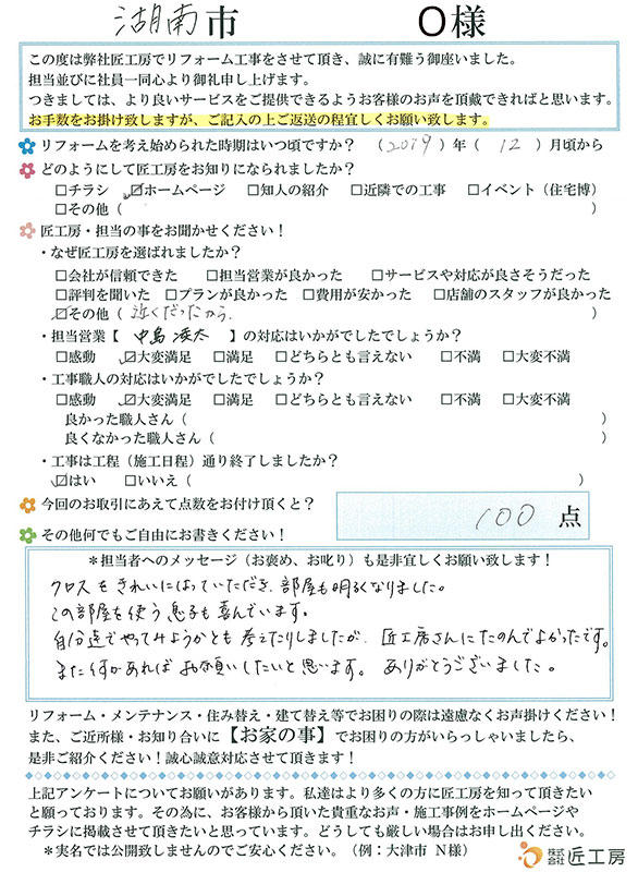 部屋が美しくなって良かったと思います!