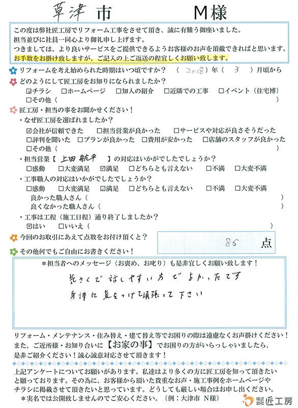 質問しない事でも伝えて下さり安心してお任せできました!