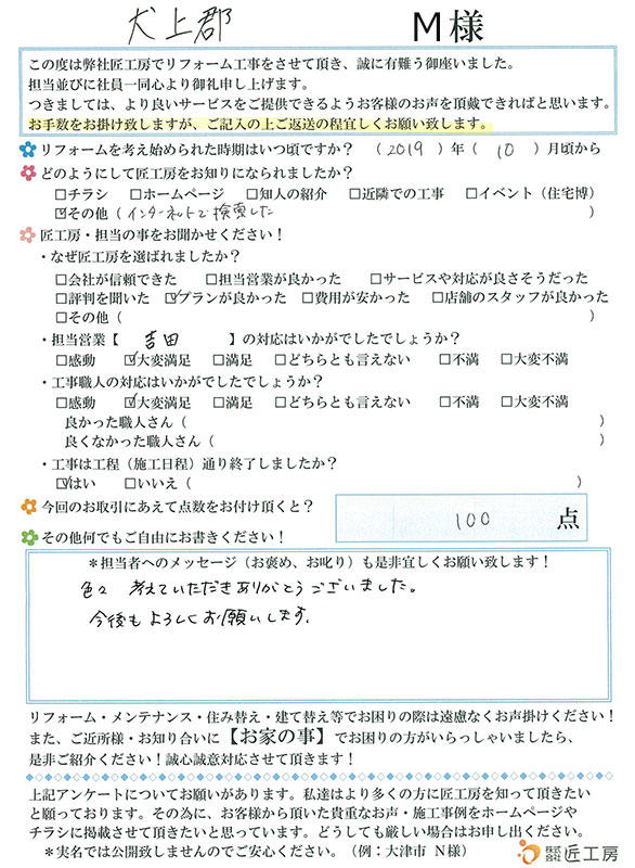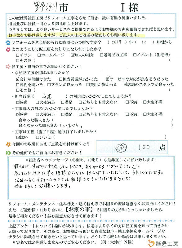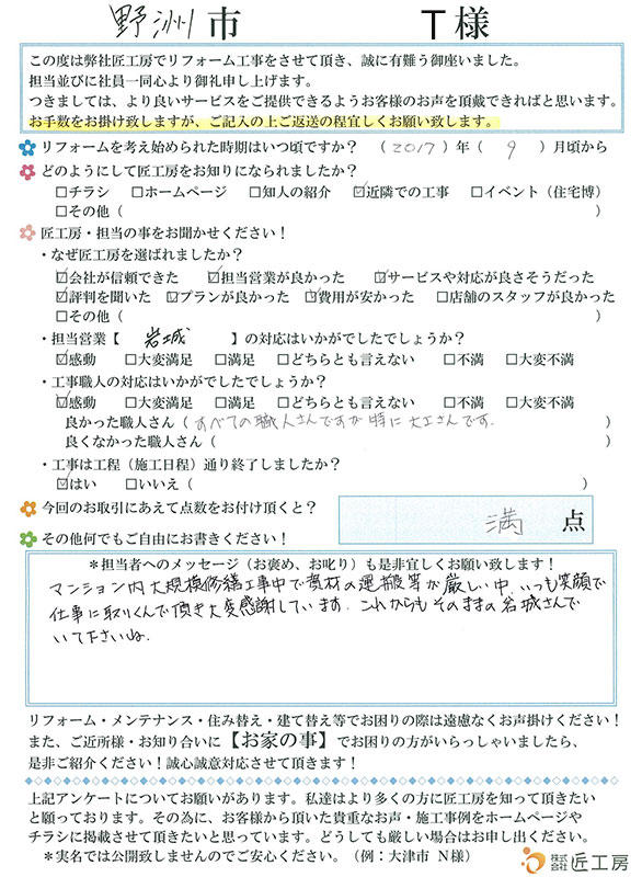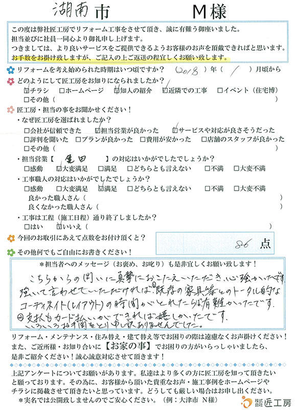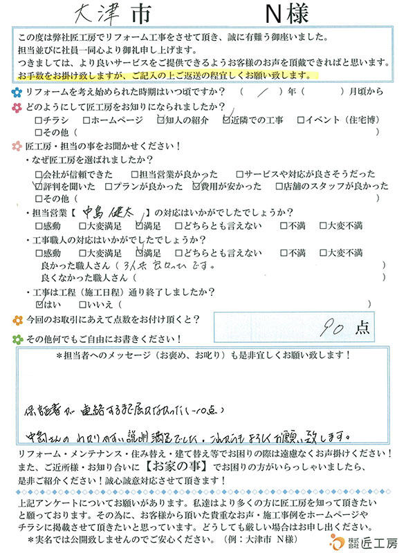 いつも笑顔で仕事に取り組んで頂き感謝しています!