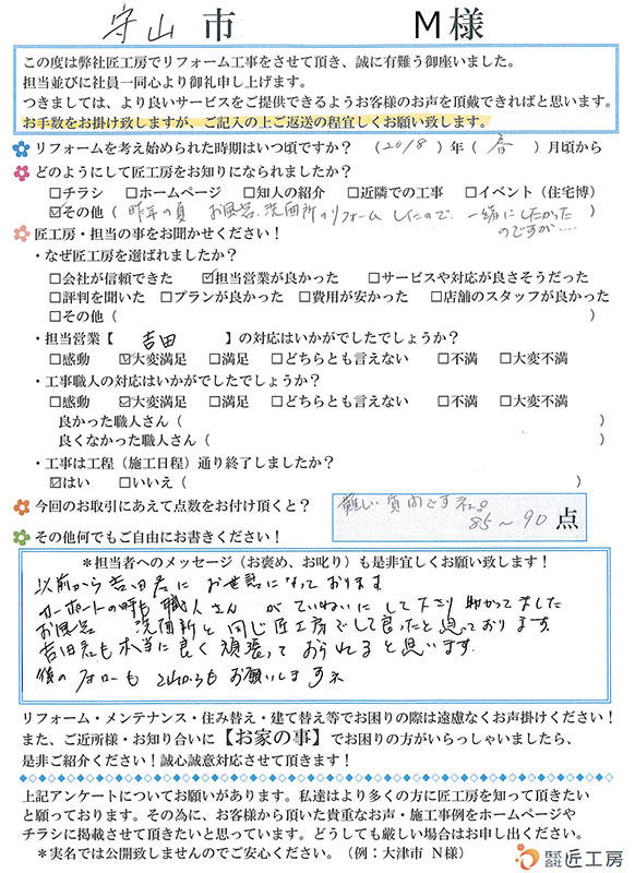 とても快適なお風呂になり家族みんなで喜んでおります!