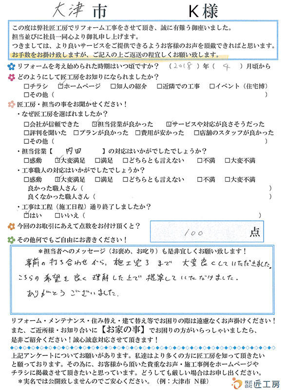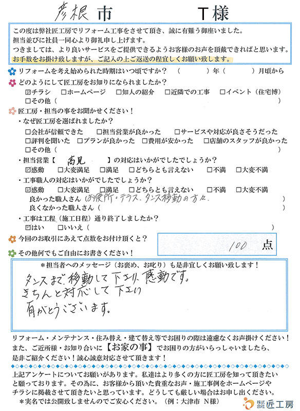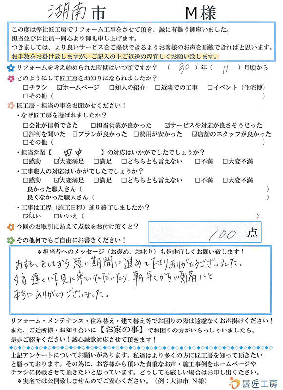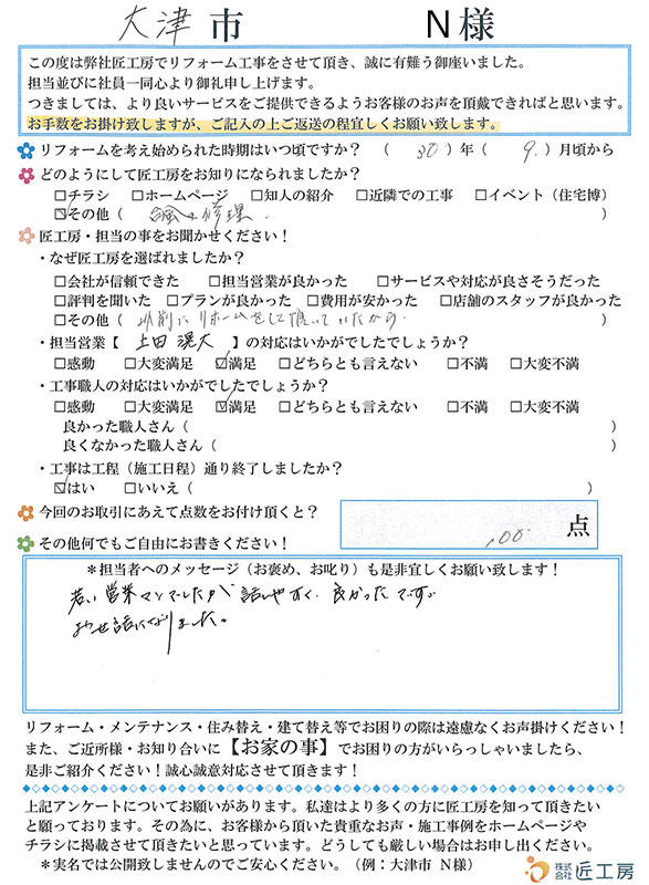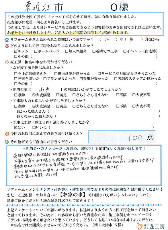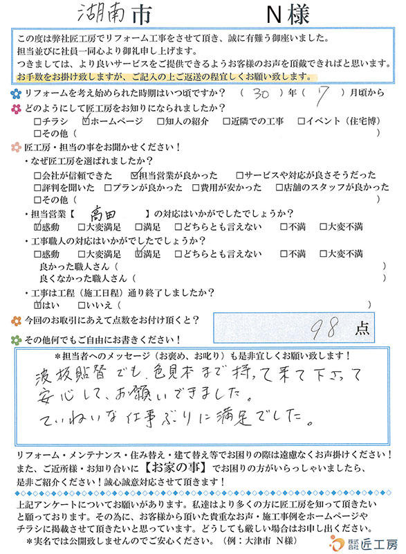 リタッチの塗り直しなども対応して頂き感謝しています!
