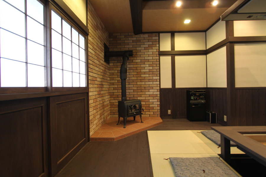 一室だけのリフォームでしたが、囲炉裏に薪ストーブを設置するなど、