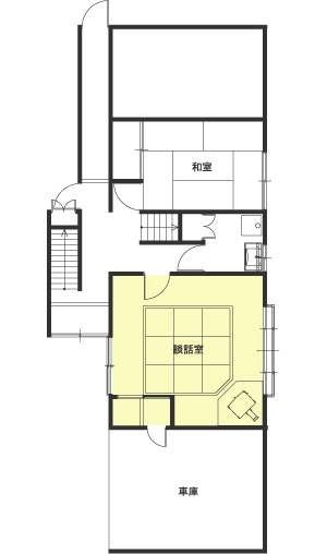 間取りは変更せず、人が外からも入ってこれるように車庫側に入口を設けました。