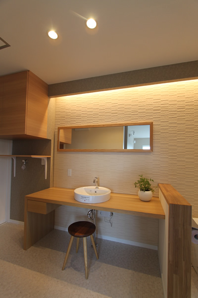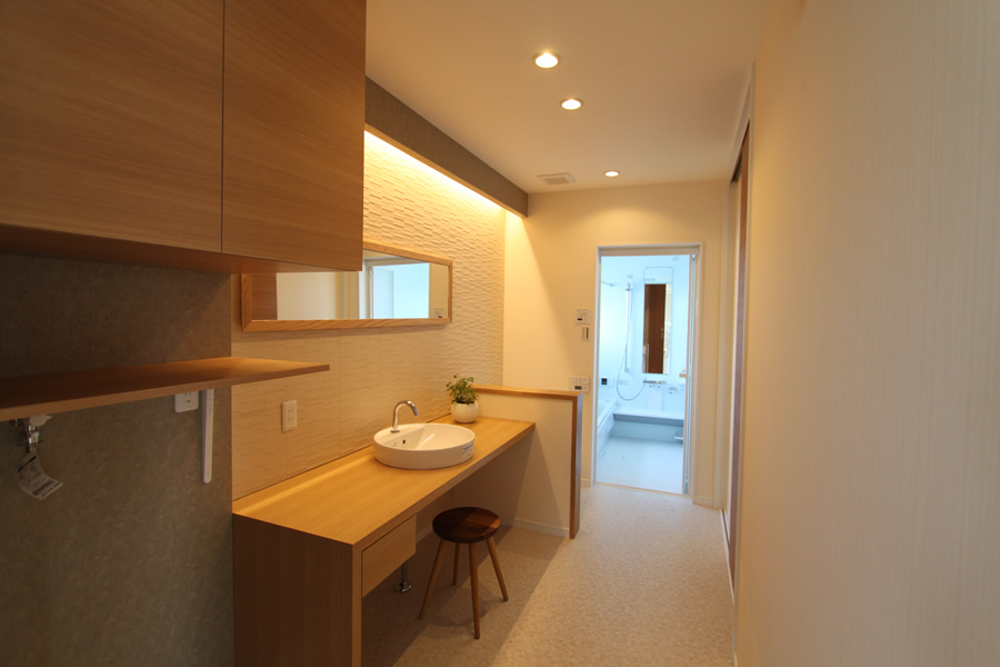 また造作の洗面化粧台は「手を洗う」「歯をみがく」などの機能としてだけでなく、空間に余白があるように、