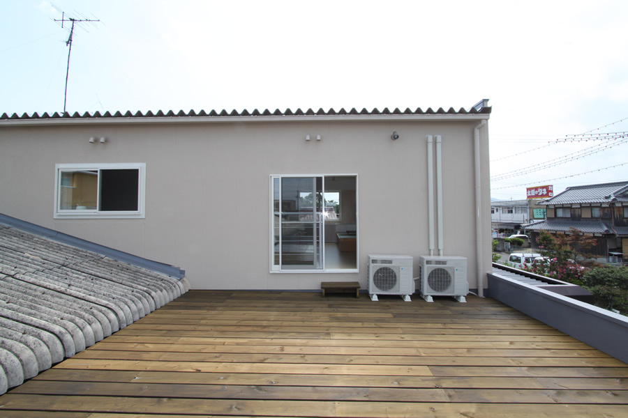社屋の平屋部分を生かして設置したスカイデッキも楽しめる要素のひとつです。
