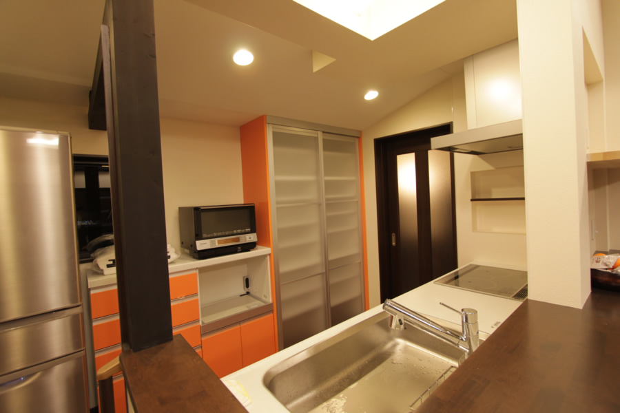 キッチンは一部対面キッチンを採用。カウンターを設けることで、手元は上手く隠れる仕様になっています。