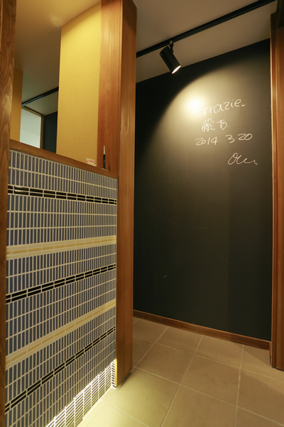 また、壁面の所々を黒板塗料で塗装し、お店のアピールの場所にしました。