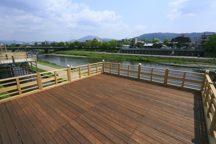 この店舗の一番の魅力といってもいい、川床。見渡す限りの絶景。