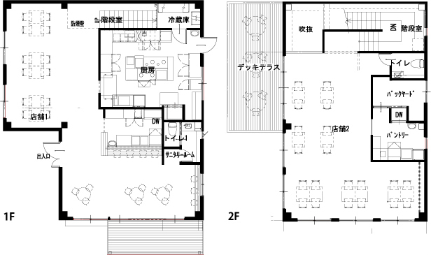 イタリアンリゾートをイメージした、大人のレストランにしたい。 1Fはカジュアルなバルに、2Fはシックなレストランと少しイメージを変えたデザインにしたい。