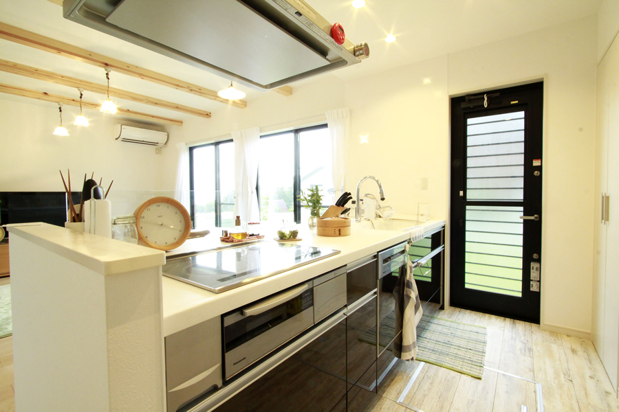 手元もオープンな対面キッチンですので、換気扇もデザイン性の高いものを選択しました。