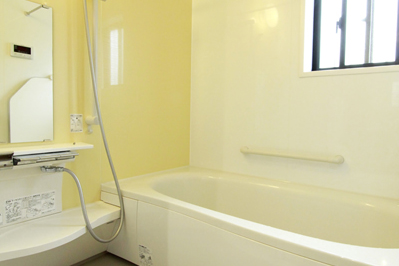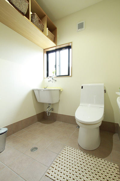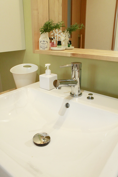 洗面ボウルや鏡等デザイン性を兼ね備えた作りです。 水まわりは特に、お父様が使用しやすいよう、