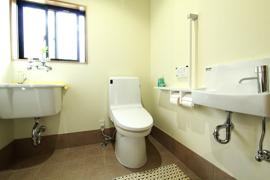 既存の洗面脱衣所より大きくとり、車椅子でも使用しやすいよう、足元が大きくあいたデザインになっています。