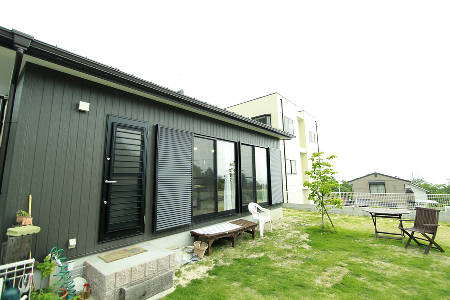 増築部分の外壁には濃い木目調の外壁材を使用し、既存部分の白壁とツートンにしました。