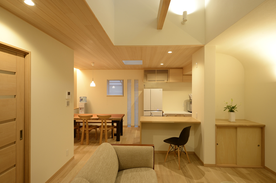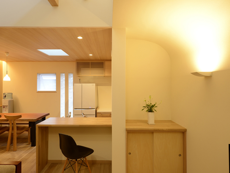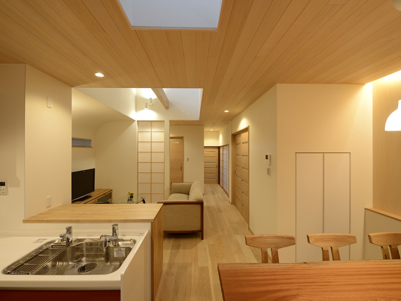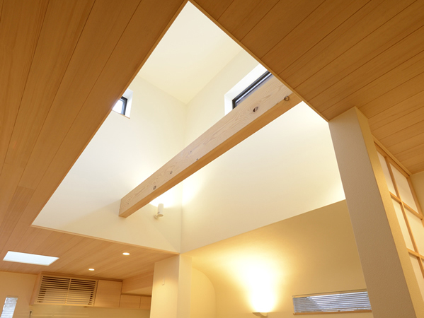 LDKと天窓を共有することで、互いの気配をさり気なく感じるようにしています。