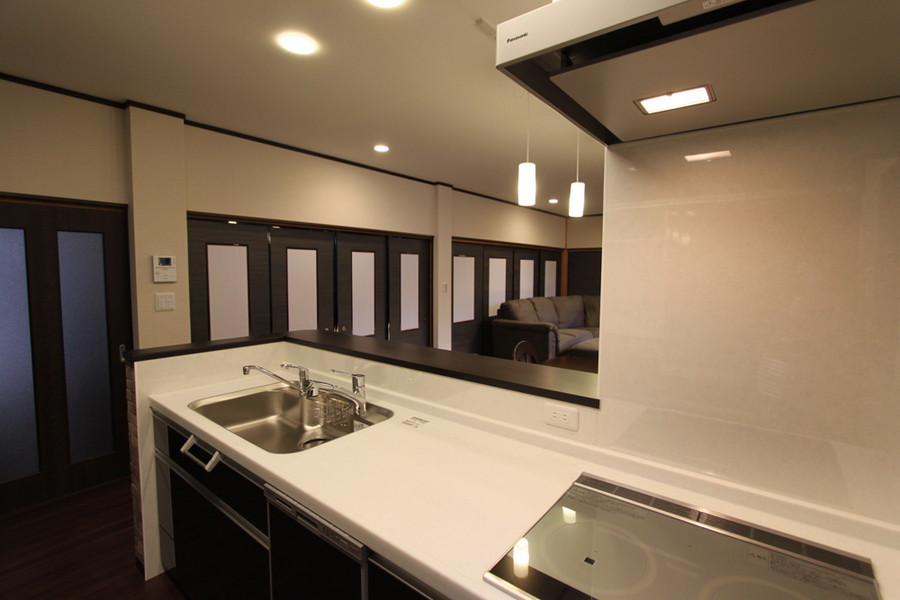 リビングでくつろぎ、ダイニングでご飯を食べる。キッチンでみんなを見ながら、また、みんなと一緒にご飯を作る。