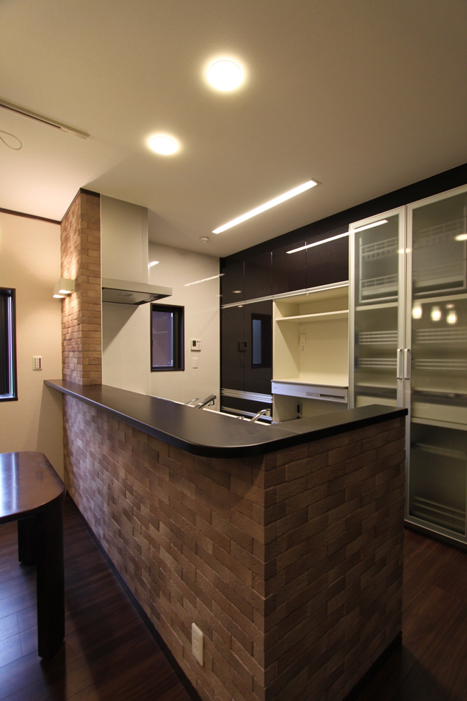 キッチンカウンターはオーダー品です。多少の水に濡れても大丈夫なような素材選びをしています。