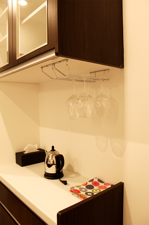 キッチンにはカウンターを作り、軽食をとっていただけたり、軽くお酒を楽しまれる場としても
