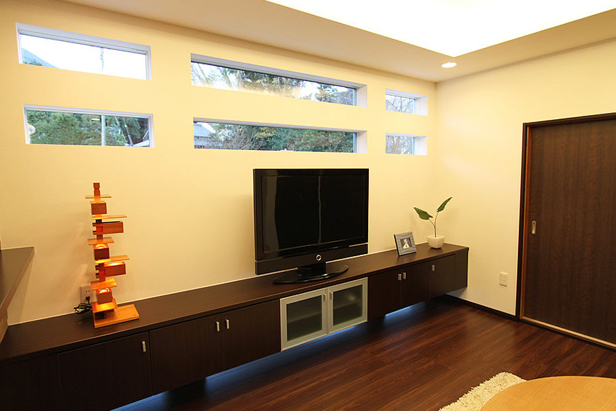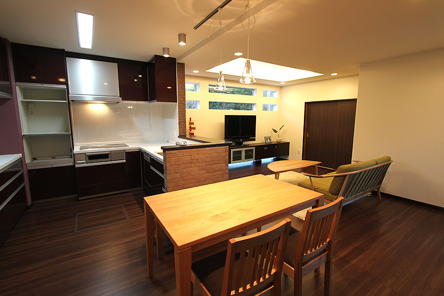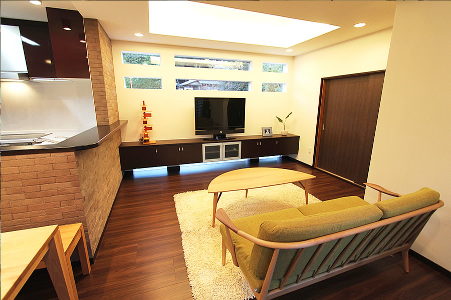 水まわりを一新。 生活スペースの中心であるLDKを中心にリフォームしました。 窓の位置を変えることで、視線をずらし、 なおかつ光を取り込める形にしました。 掘り込み天井に間接照明を入れることで、視覚的に天井が高いという印象を与えてみました。 またエコカラットを貼ることで、健康にも良い空間に仕上がりました。