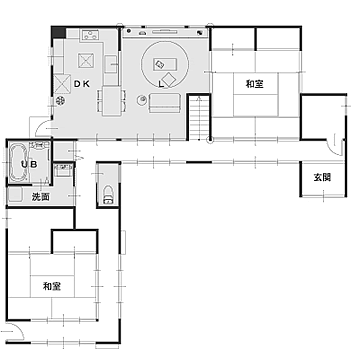 間取りはシンプルにDKと和室をつなげるだけの一般的なLDK空間にしました。