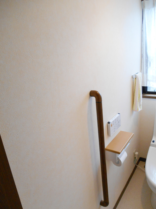 | 工事内容 | 1階2階を施工するという事で、1階2階のトイレが使えない時間を極力なくせるように設備屋さんと内装屋さんで協力してもらいました。 クッションフロアと壁紙はトイレを外さないと張り替えられないので、トイレを外し、壁紙とクッションフロアを張り替えた後で、トイレを取り付けてもらい、ペーパーホルダーやタオル掛けを交換しました。 |