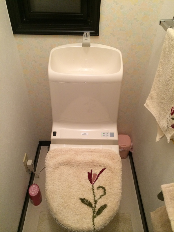 | 工事内容 | 1階のトイレ壁紙はトイレ正面の1面だけアクセントとして花柄の壁紙を張り、黒い幅木に合う和風モダン調の仕上りになりました。この黒い幅木は色も大分落ちてきていたので壁紙とクッションフロアを張り替える前にご主人様がご自身で塗られました。2階のトイレは全面花柄の壁紙を貼り、ピンクのトイレを取付け、可愛しいお部屋に仕上がりました。今回施工したトイレはどちらもTOTOのZJというトイレで、イベントの特価価格でお得にご提供することができ、そしてご主人のご活躍もあり、全体の費用も抑えられる事ができました。 |