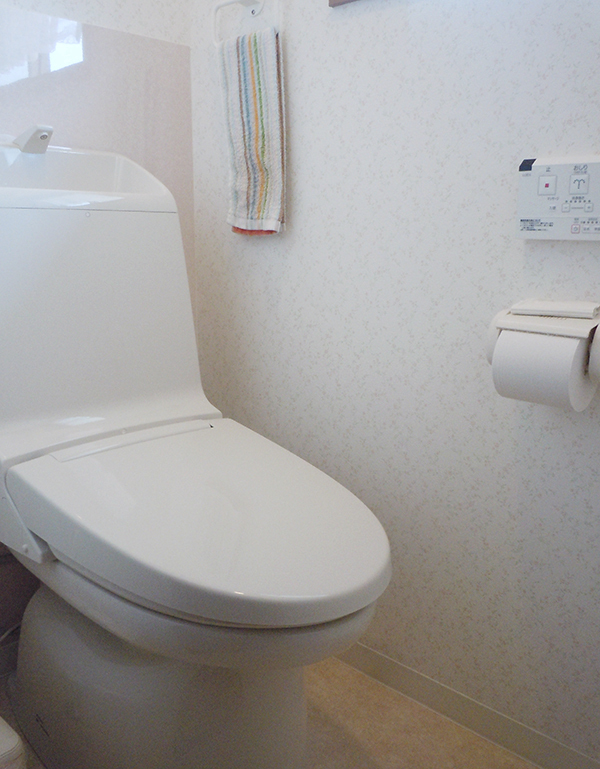 | 工事内容 | 1階と2階のトイレはLIXILのアメージュZ(ウォシュレット一体型の手洗い付)をご提案しました。 隙間掃除がスムーズにできるリフトアップ・特殊な加工で陶器が汚れにくいプロガードなど、お掃除がし易いトイレです。1階のトイレは床・腰壁がタイルでしたが、お掃除の面を考え床はクッションフロアにし、腰壁はトイレ専用のパネルを貼りました。クッションフロアやパネルのデザインを変更する事で、明るい空間を演出することができました。 2階のトイレもストライプのクロスから花柄に貼り替え、可愛らしい空間になりました。 |