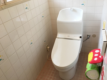 以前はタンクトイレを使用されていたが、タンクとウォシュレットが一体型のトイレに交換。 |